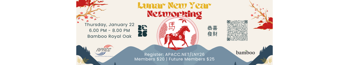 As the vibrant hues of red and gold usher in the Year of the Horse, we invite you to kick off the new year at APACC’s Lunar New Year Networking at Bamboo Royal Oak.